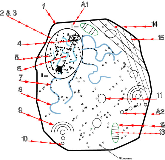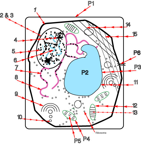 Animal Cell - two versions - you can test yourself on the one with just the numbers
